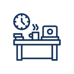 Puestos con iluminación, sillas de oficina, mesas amplias y espacio para documentos